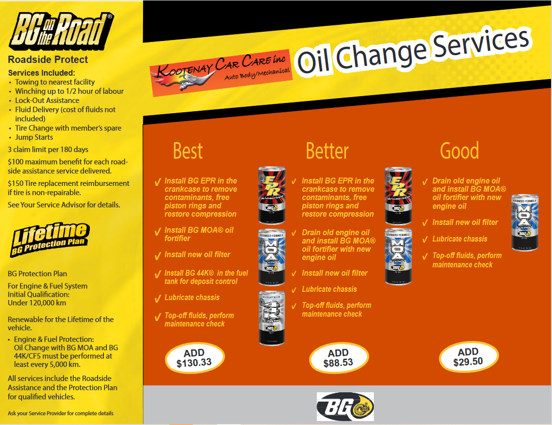 We are happy to be a part of BG Products. From Kelowna to the Alberta border, we are the only company BG partnered with. We have BG on the Road, and Lifetime Protection Plan for your vehicle!